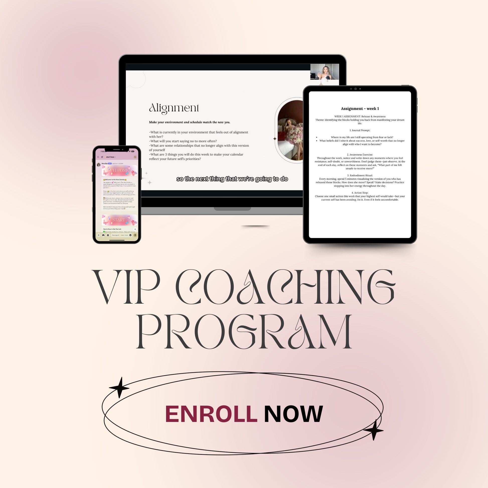 The VIP Coaching Program is a high-touch, fully personalized 4-week experience designed to help you remove the emotional blocks, subconscious patterns, and outdated habits that are keeping you from living as your highest self.
